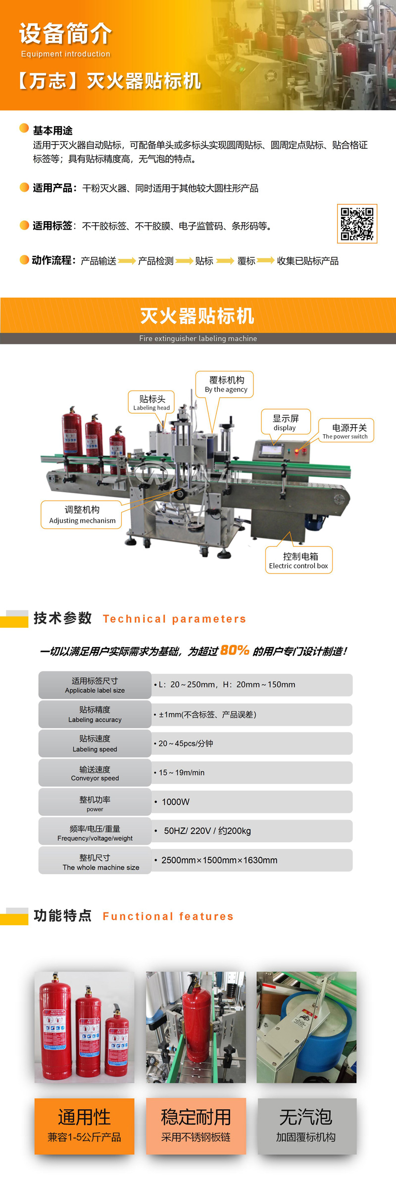 全自動滅火器貼標機適用于滅火器自動貼標,可圓周貼標、圓周定點貼標。具有貼標精度高,無氣泡的特點。