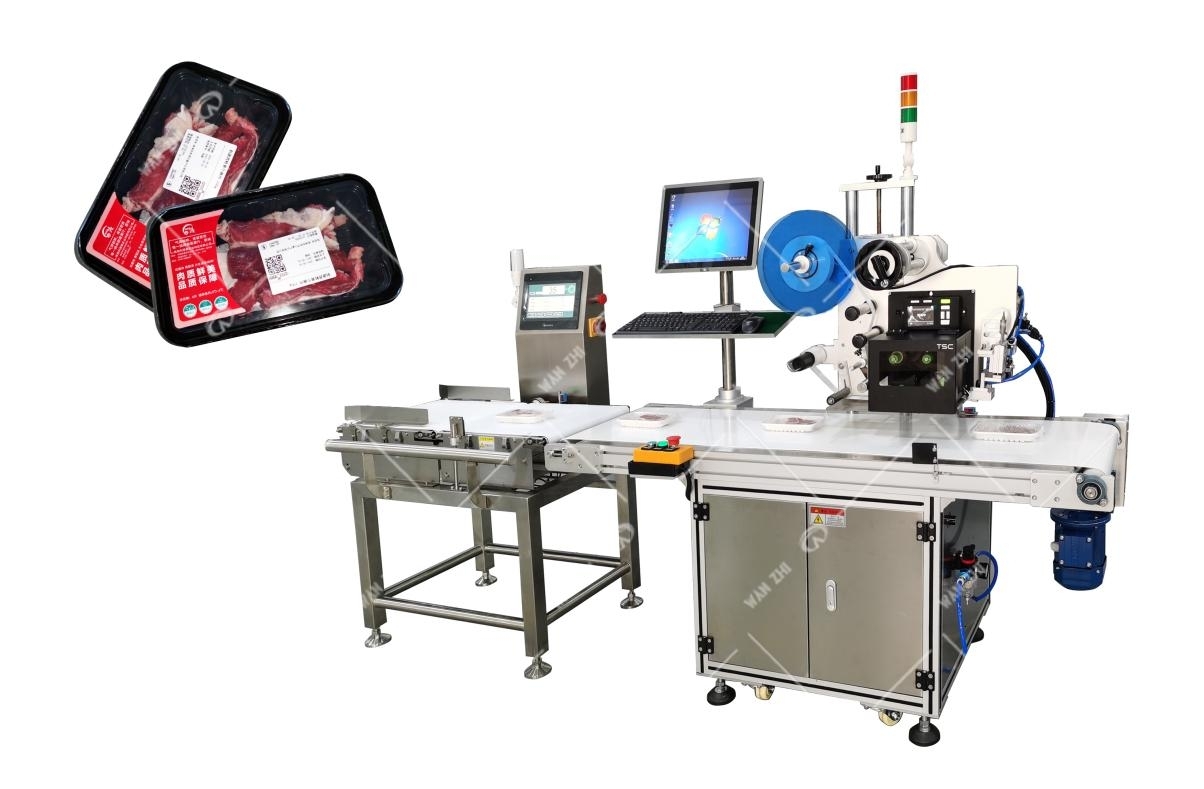 適應(yīng)于不同高度(厚度)的包裝盒/袋自動稱重貼標(biāo), 前端可連接包裝機(jī)、包膜機(jī),稱重后信息即時傳輸?shù)酱蛴∠到y(tǒng)生成內(nèi)容后在對應(yīng)的產(chǎn)品或包裝上實(shí)時貼標(biāo),采用先進(jìn)無接觸吹貼式貼標(biāo),一分鐘最高可貼50Psc,打印模板可編輯,方便生產(chǎn)管理信息溯源,實(shí)現(xiàn)流水線無人化作業(yè)。